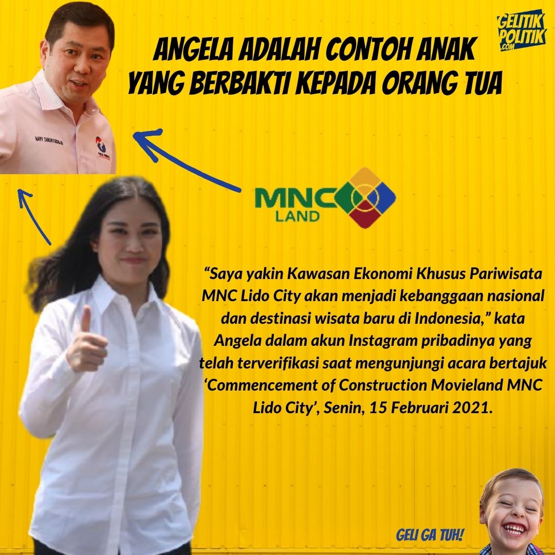 MNC Lido City merupakan mega proyek MNC Land yang tak lain milik ayahanda Angela, Hery Tanoe. proyek ini sedang mengembangkan kawasan hunian, komersial, destinasi wisata dan resort terintegrasi seluas 3.000 hektare (Ha) di Lido, Jawa Barat yang berbatasan dengan Provinsi DKI Jakarta dan Banten, dikelilingi dengan lebih dari 70 juta penduduk.