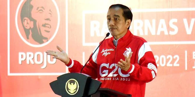 Presiden Jokowi saat memberikan arahan pada Rapimnas Projo