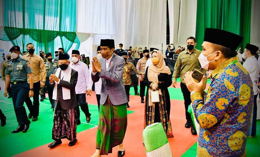“Sekali lagi atas nama masyarakat bangsa dan negara saya menyampaikan terima kasih kepada para kiai, para Ibu Nyai dan seluruh keluarga besar NU atas kontribusinya selama ini, kini dan nanti,” ujar Jokowi.